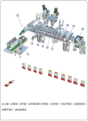 7. The bag taking structure is optimized to prolong the bag suction time and take the bag more accurately. At the same time, the large-capacity bag placement mechanism can store about 600 bags at most. When the equipment is running, the bag placement frequency is reduced and the production efficiency is improved.