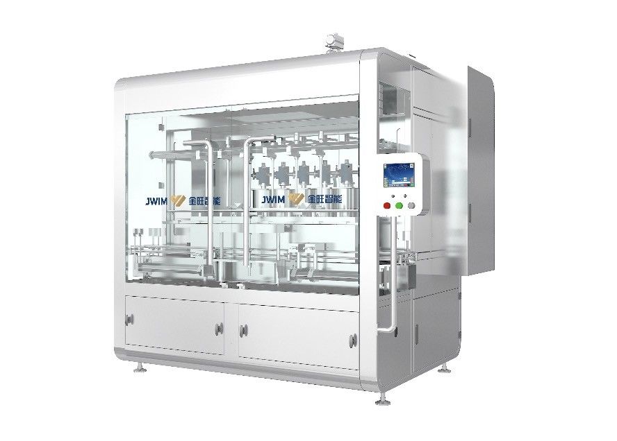 c)Jinwang uses PLC control, servo motor drives the synchronous belt+stable operated double screw rod lifting structure to make sure the high precision of piston movement and filling. The synchronous belt will not break with embedded metal wire. At present, first-class packaging manufacturers are using this structure. Compared with similar products on the market, it adopts a common motor + encoder and chain drive structure. After a long time of usage, the tensile chain will affect the filling accuracy and equipment stability.